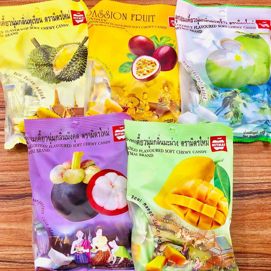 • MITMAI的軟糖以實實在在的口感和品質為您帶來純粹的泰國風味 • 讓您在每一口中感受到香濃的水果! • 號稱泰國水果嗨啾,每一口都香濃! • 精心挑選並結合最新的製程技術,以確保MITMAI的軟糖在口感上達到最佳狀態!