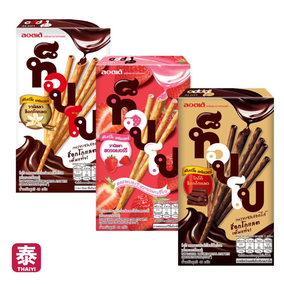 【Lotte】TOPPO餅乾棒-香草巧克力/可可巧克力/香草草莓 (40g)